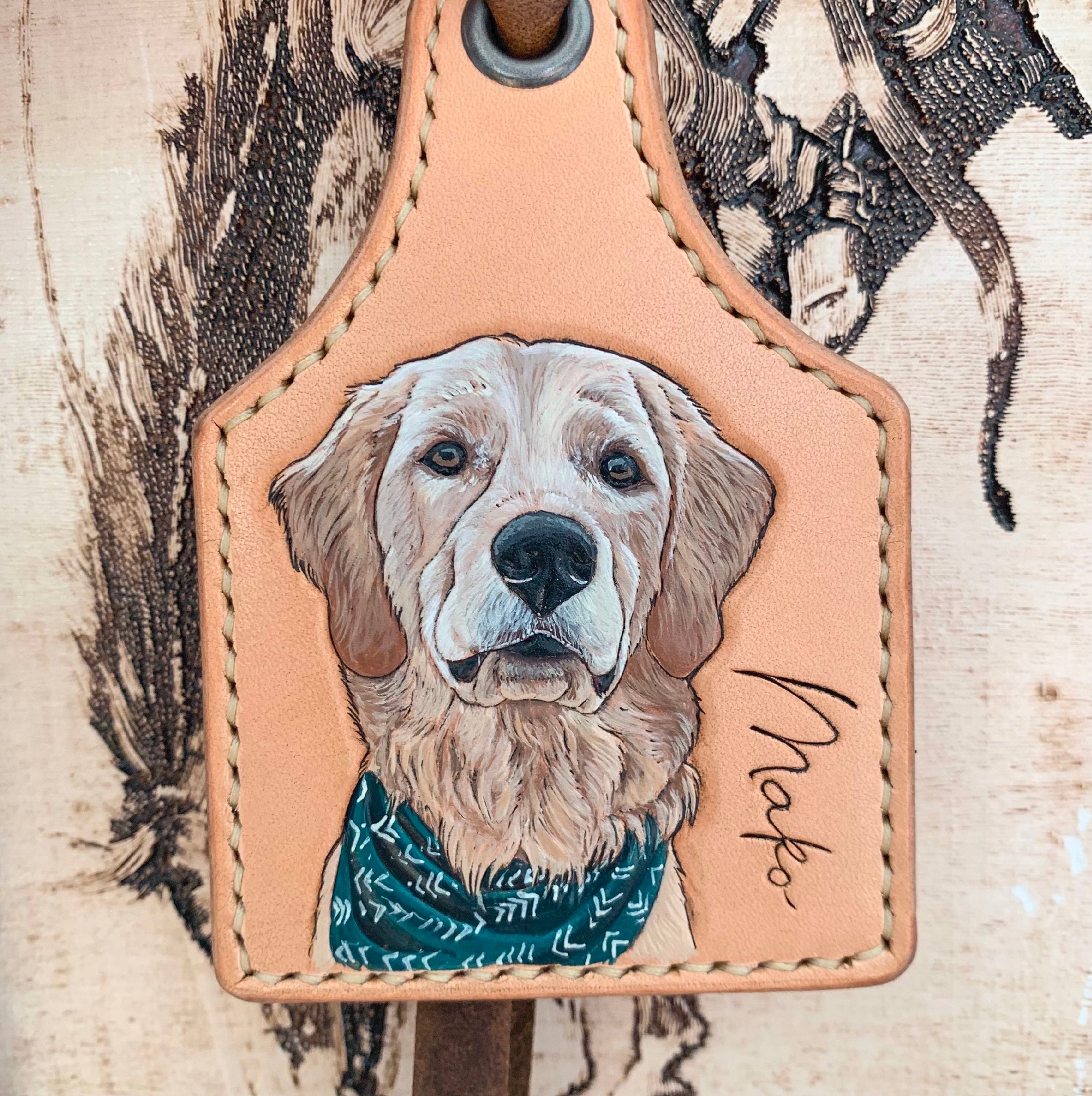 This listing is for a custom portrait style tag in either the “luggage tag” or “cow tag” style. Please specify which type you prefer in replying to order specification email.
